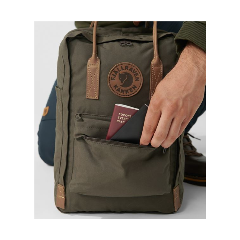 Verzia notebooku Kanken č. 2. Vyrobená z G-1000 HeavyDuty s polstrovanou priehradkou na počítač a koženými detailmi. Dodáva sa s klasickým polstrovaným sedadlom Kanken a pohodlnými polstrovanými ramennými popruhmi. Praktický batoh na každodenné nosenie, ktorý vydrží.