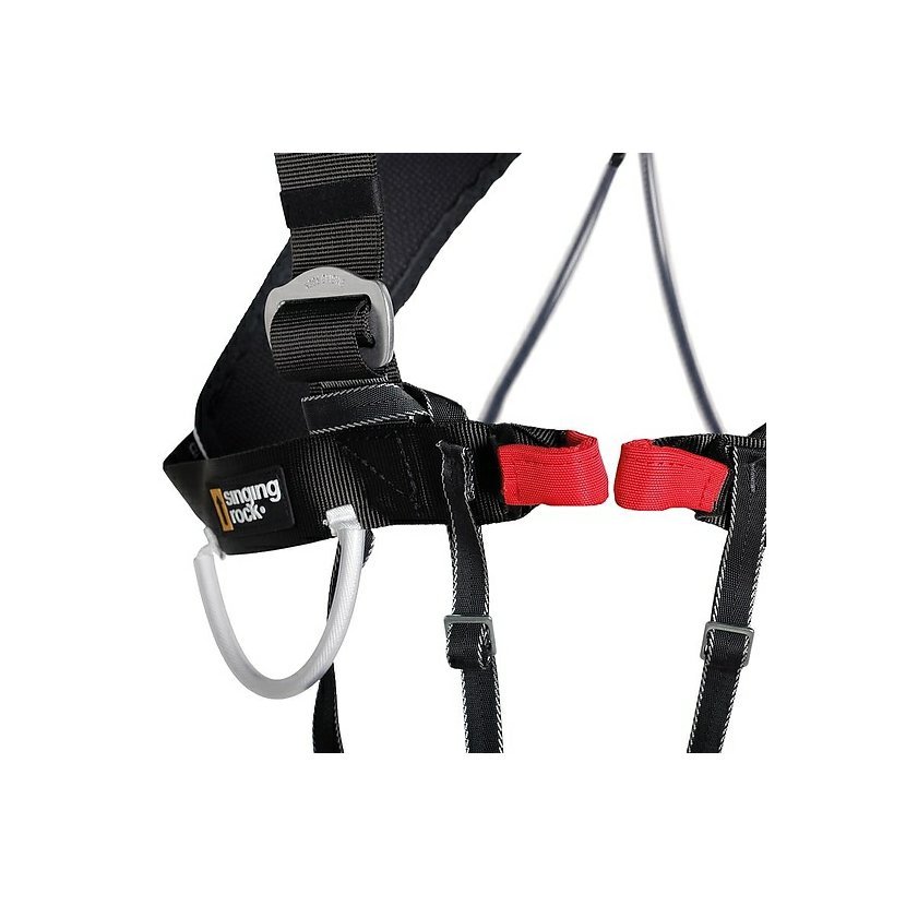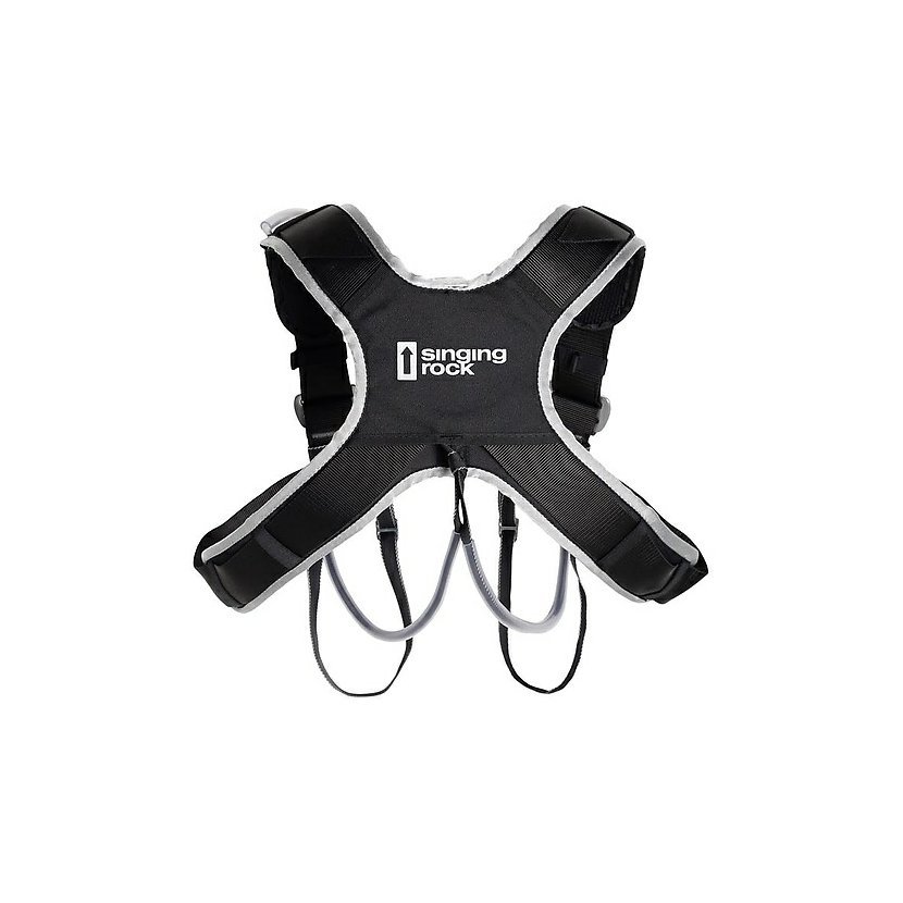 určený na použitie v kombinácii so sedacím úväzkom optimalizuje pozíciu tela pri vise v lane a po páde poskytuje väčší komfort pri lezení viacdĺžkových ciest umožňuje rovnomerné rozloženie väčšieho množstva lezeckého vybavenia (vybavenie nemusíte niesť len v dolnej polovici tela na sedacom úväzku) 2 veľké odnímateľné dĺžkovo nastaviteľné materiálové pútka s nosnosťou 15 kg 2 klasické materiálové pútka s nosnosťou 5 kg 1 malé materiálové pútko s nosnosťou 5 kg na ľavom ramene polstrovanie vyrobené z ľahkého priedušného materiálu polstrovanie je možné kompletne odňať Používajte výhradne v kombinácii so sedacím úväzkom. Nepoužívajte hrudný úväzok samostatne!