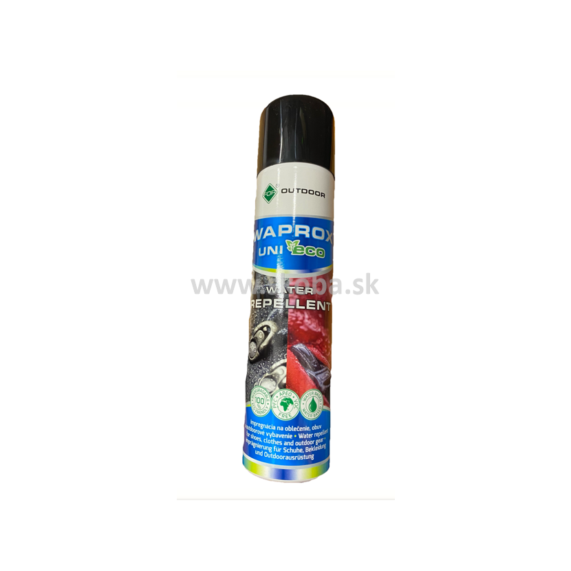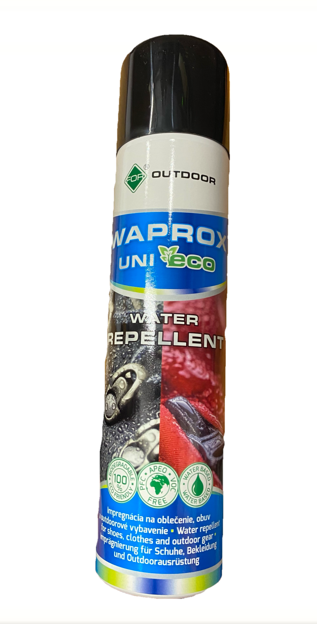 WAPROX UNI z produktovej rady FOR OUTDOOR slúži na impregnáciu oblečenia a obuvi. Produkt je vhodný na kožu, koženku, textílie, membránové a nepremokavé tkaniny. Prípravok účinne odpudzuje vodu, ale pritom nezabraňuje prenikaniu vzduchu a vodných pár.