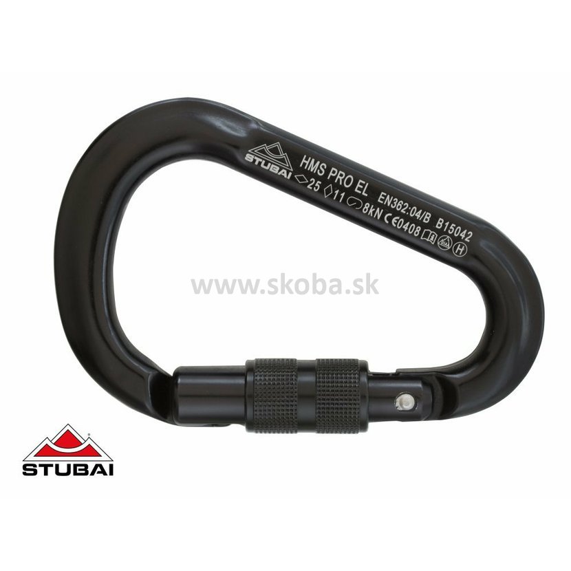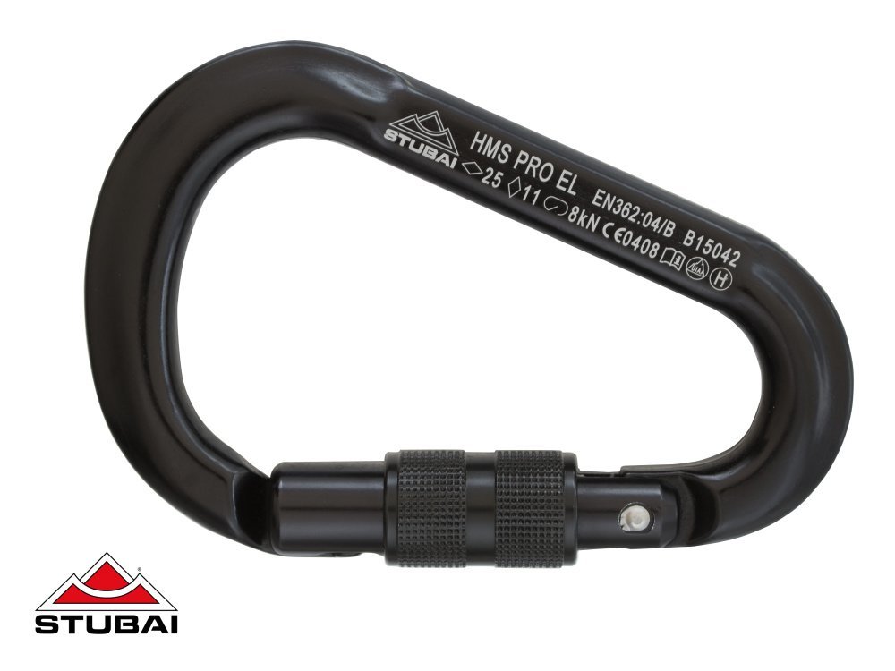 HMS karabína Stubai HMS PRO EASY LOCK patrí do povinnej výbavy každého správneho horolezca. A ak potrebuje byť menej nápadný, zvolí čiernu farbu. Vďaka precíznemu šróbovaciemu zámku HMS PRO easylock ponúka spoľahlivosť a ľahkú ovládateľnosť. Nosnosť: pozdĺžne 25 kN, priečne 11 kN, otvorená 8 kN. Priemer zámku pri otvorení 22 mm. Hmotnosť: 95 g.