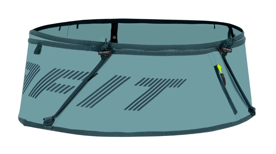 Strečový bežecký opasok s tromi otvorenými priehradkami, vreckom na zips a uchytením na palice vzadu. Ponúka miesto pre 500 ml mäkkú fľašu.