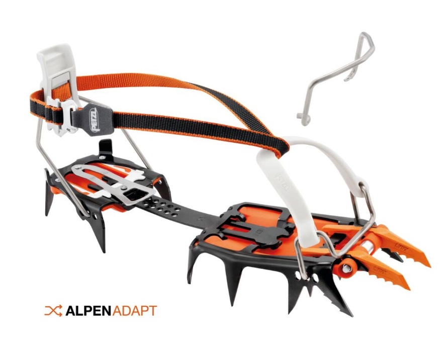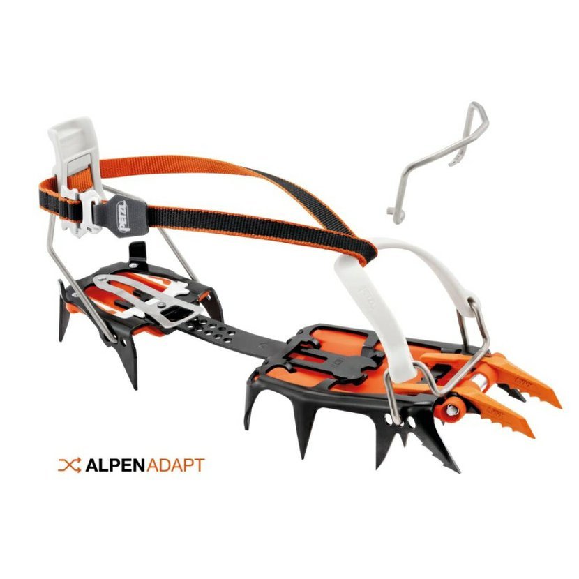 Dĺžka predných hrotov nastaviteľná jednou skrutkou (patent Petzl) Dva predné hroty je možné ľahko prestavať na monohrot: dva hroty pre snehové žľaby a kuoláre, asymetrické pre čistý ľad, krátky monohrot pre ľad a dlhý monohrot pre mixy Systém viazania LEVERLOCK UNIVERSEL je navrhnutý tak, aby vyhovoval väčšine obuvi s drážkou na päte Dvojpolohové spojovacie priečniky pre širokú škálu veľkostí obuvi (od 37 do 49) Nastavenie veľkosti bez použitia náradia Modulárny systém ALPEN ADAPT: