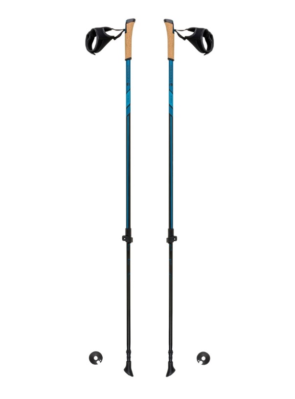 Nordic Walking palice s nastaviteľnou dĺžkou dvojdielna hliníková konštrukcia rýchloupínací systém Lock&Go odnímateľné rukavičky elegantná rukoväť z prírodného korku volfrámové hroty gumové bezpečnostné krytky hmotnosť: 490 g (pár) materiál: zliatina hliníka 7075 (dural) nastaviteľná dĺžka: 85 - 135 cm dĺžka v zloženom stave: 85 cm priemer: 16/14 mm